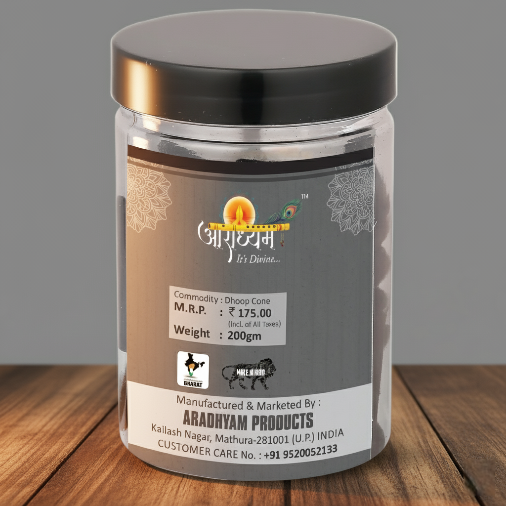 Premium 2″ cones handcrafted with precision. Burning time approx. 45 min. Charcoal-free, bamboo-free, easy to use. Infused with Guggal aroma, earthy and sacred, creates spiritual ambiance for home or temple.