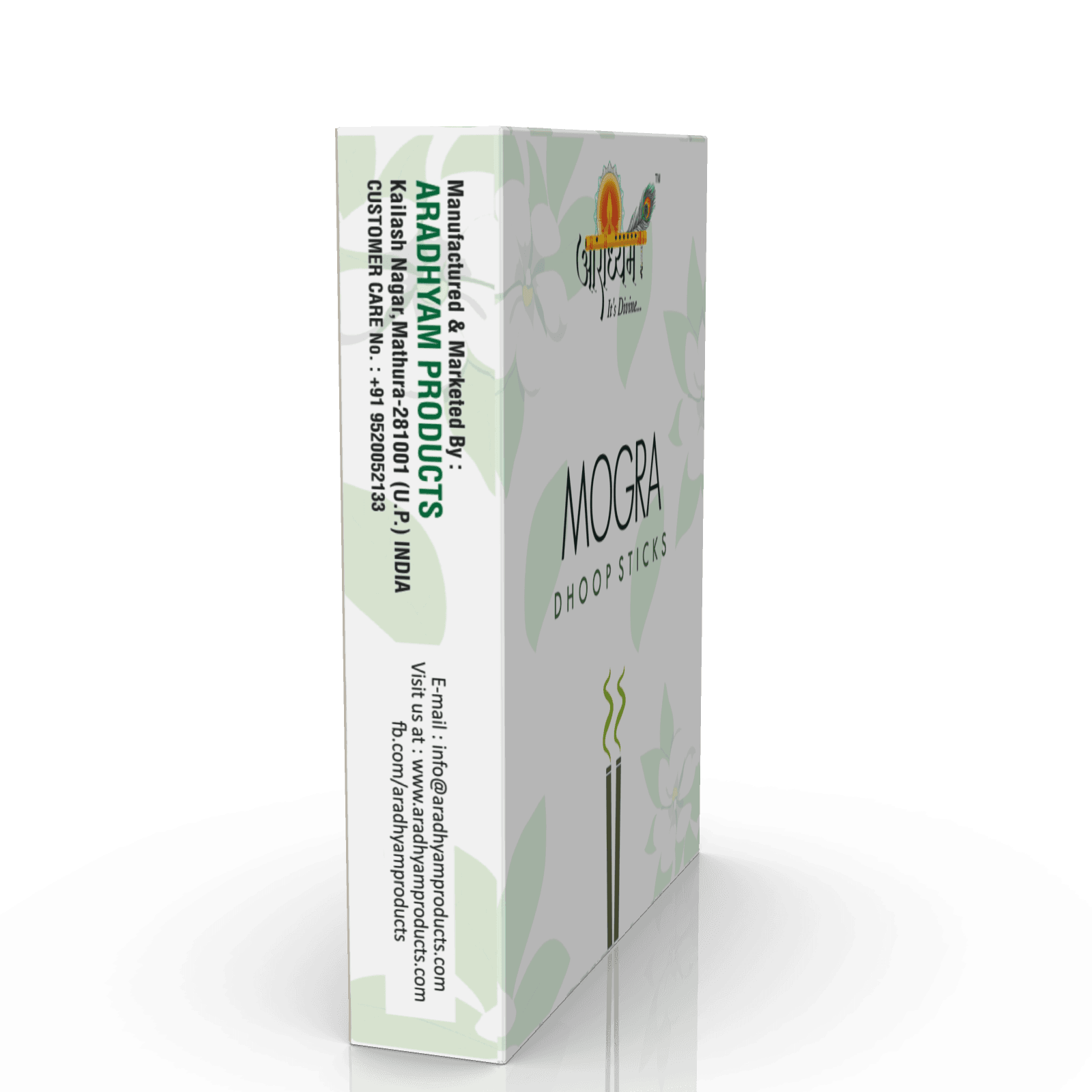 Experience the enchanting aroma of blooming Mogra (Jasmine) flowers. These sticks bring freshness, purity, and floral elegance to your home or temple.