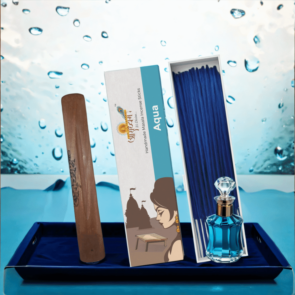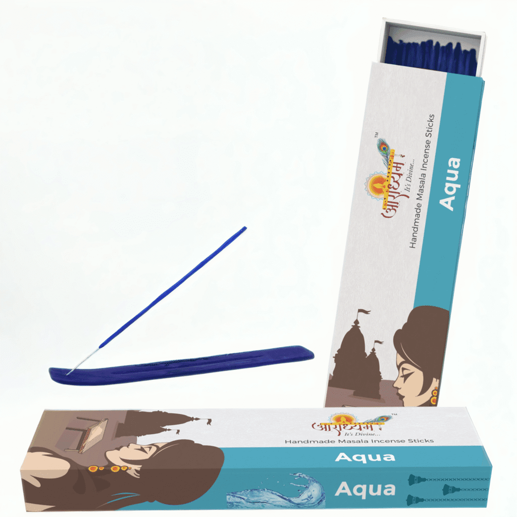 Refreshing Aqua fragrance evokes the coolness of water and brings calmness to your home or meditation space. Handcrafted with ancient Indian skills, each stick ensures purity and devotion. Perfect for creating a serene and rejuvenating environment during pooja, yoga, or relaxation rituals.