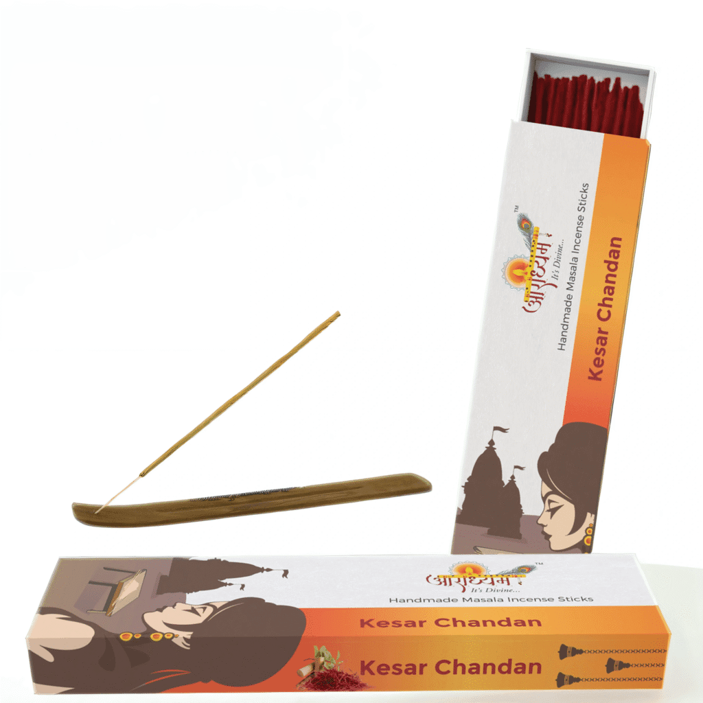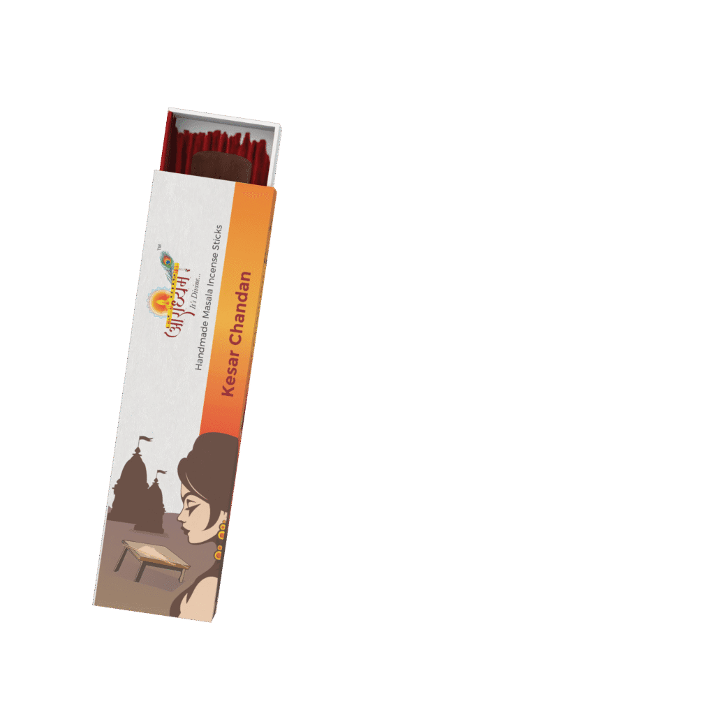 Luxurious aroma of saffron and sandalwood enhances spiritual rituals and meditation. Each stick is handcrafted with traditional Indian techniques, herbal powders, and dipped in essential oils. Creates a warm, calming, and devotional atmosphere.