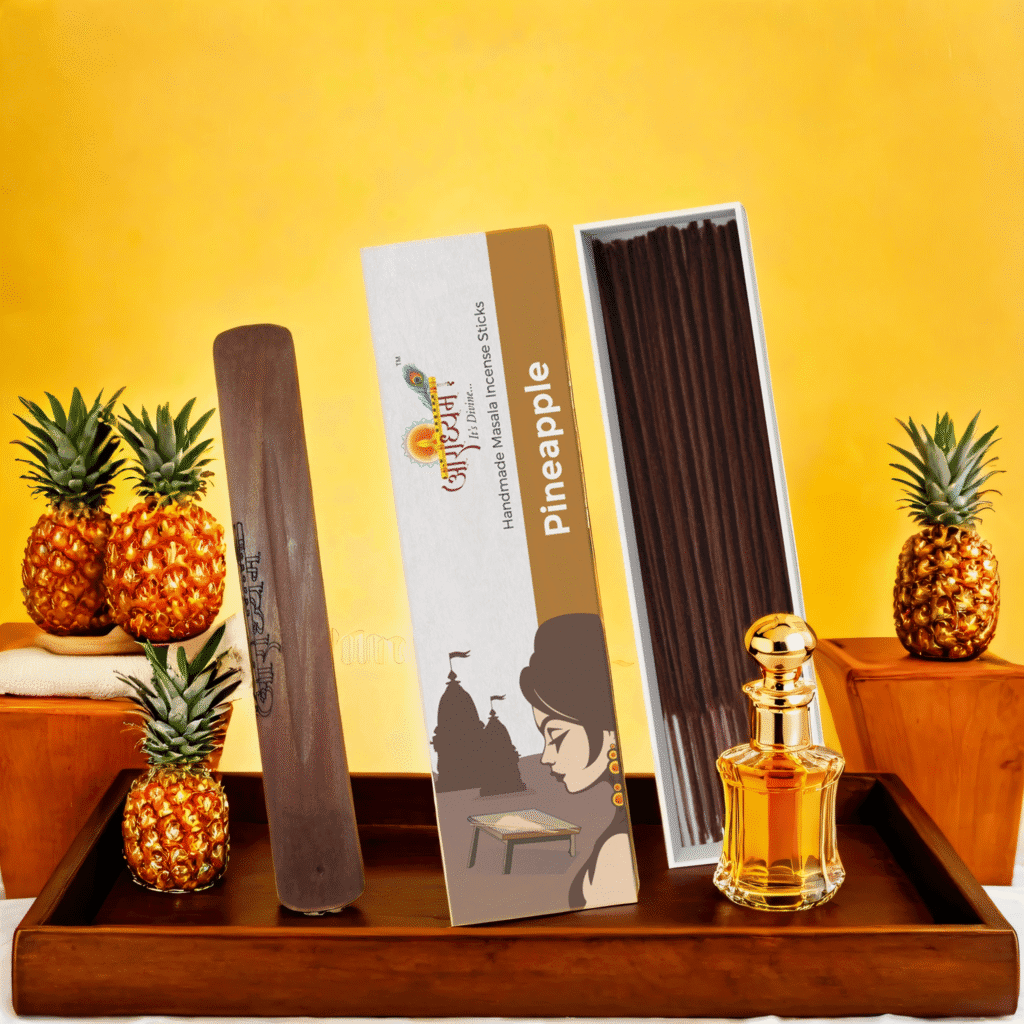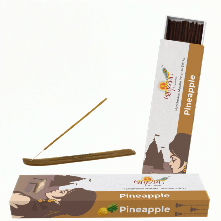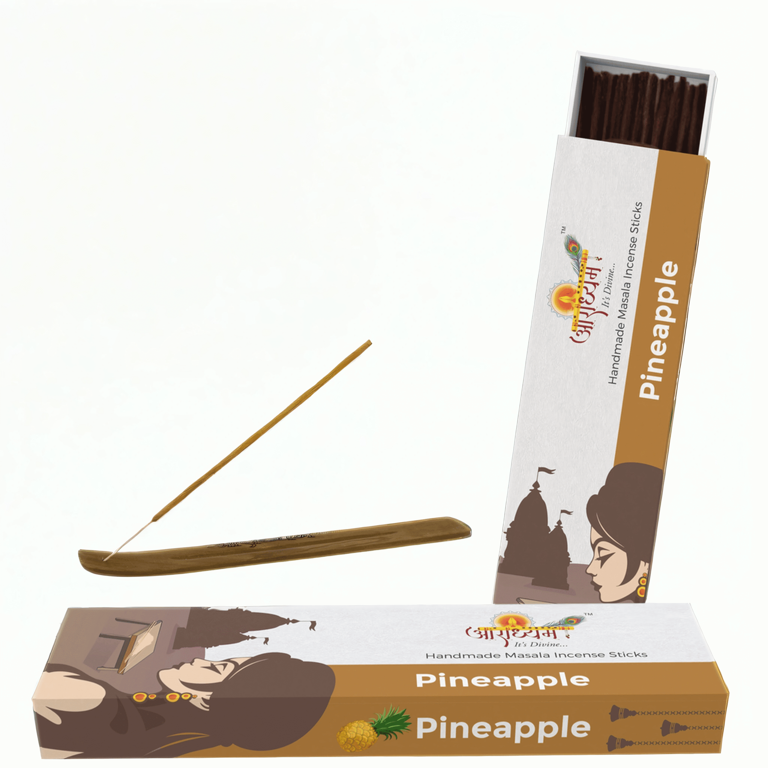 Enjoy the tropical freshness of Pineapple fragrance that instantly energizes your senses. Handcrafted with care, each stick reflects the artistry of ancient Indian incense-making. The sweet, fruity aroma creates a joyful, lively ambiance for meditation, pooja, or casual relaxation at home.