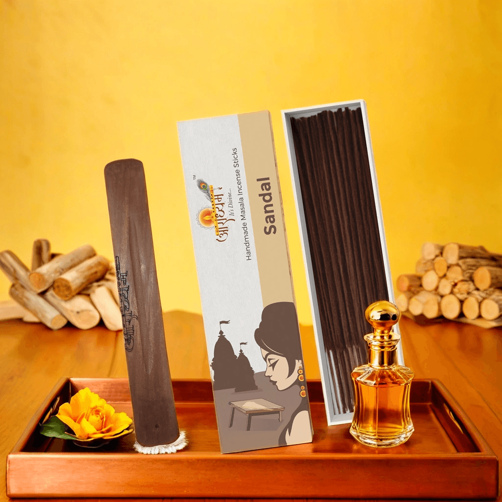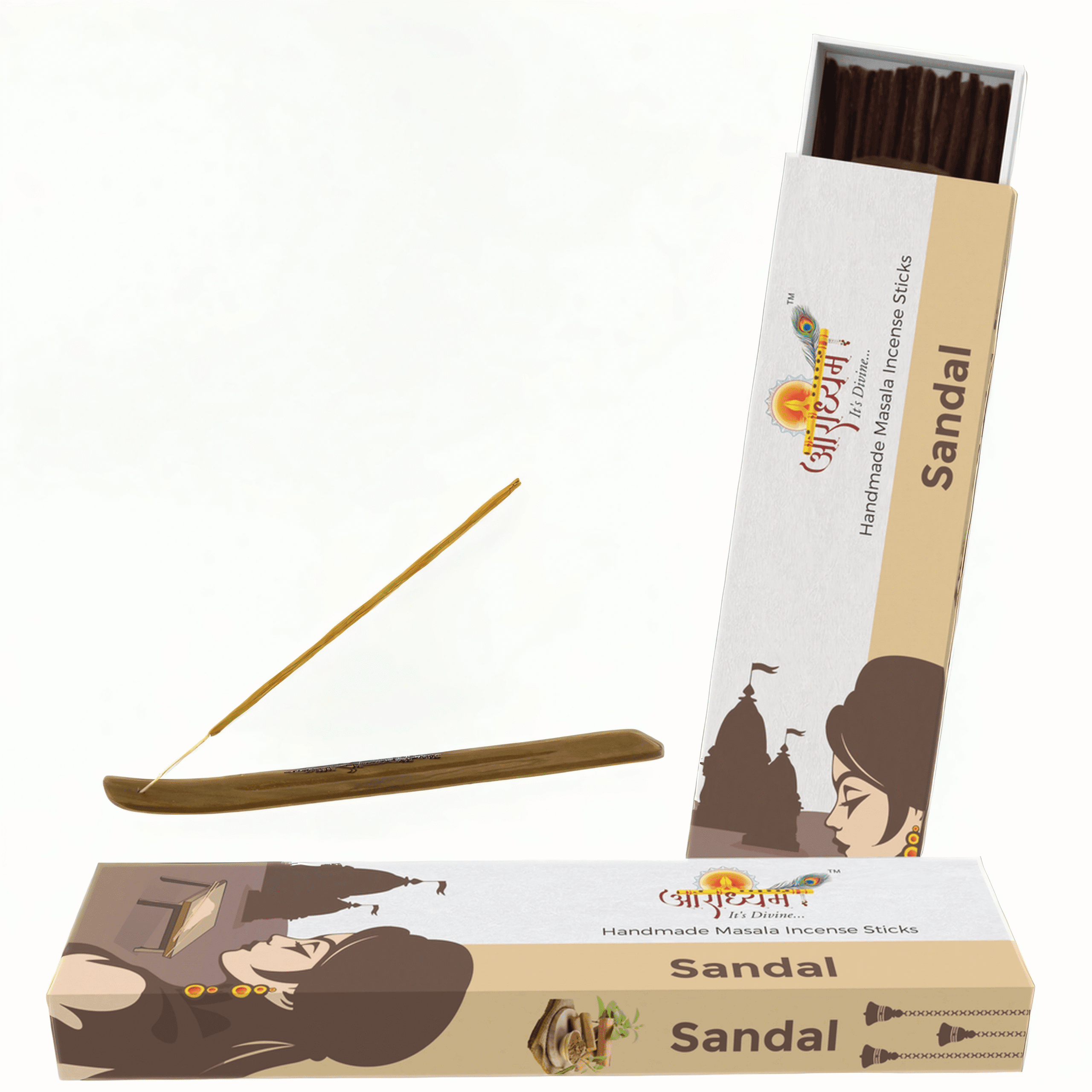 Warm sandalwood incense sticks, handcrafted for meditation and spiritual ambiance.