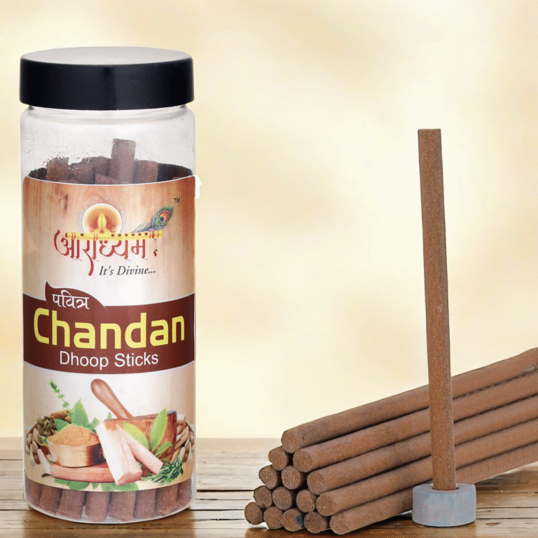 Ideal for rituals, meditation, or creating a tranquil home environment, Chandan Dhoop Sticks bring the essence of tradition and spirituality into your sacred space.