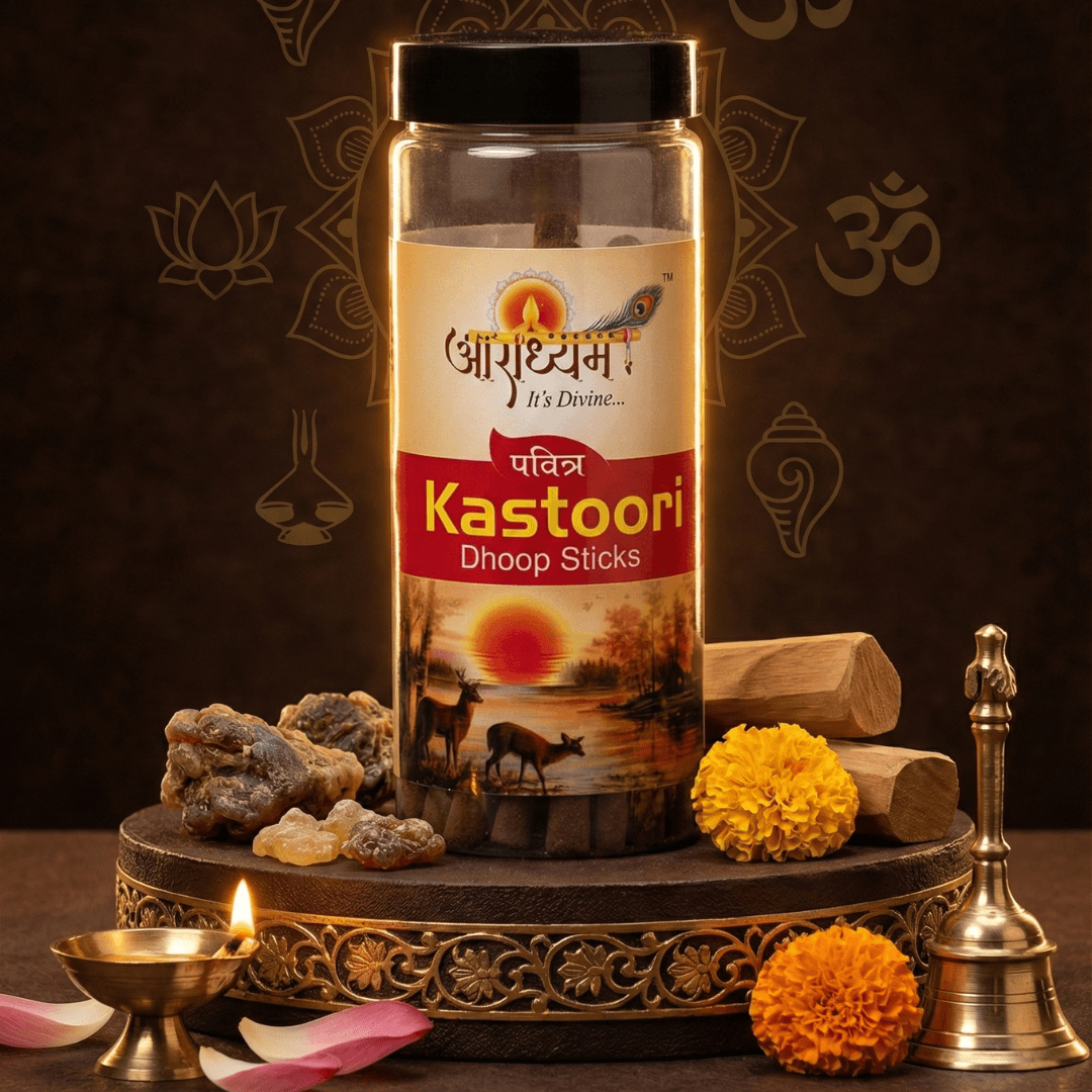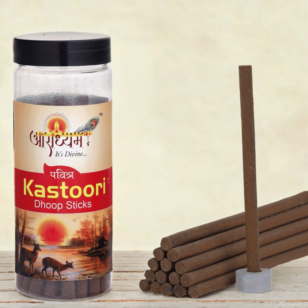 Perfect for daily rituals, meditation, or creating a serene ambiance, Kastoori Dhoop Sticks bring a touch of timeless spirituality and luxury to your sacred spaces.