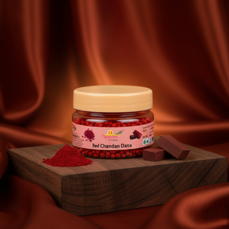 Experience divine purity with Pooja Chandan Dana (Red) — specially prepared for religious and spiritual rituals. Each bead of Chandan (sandalwood) carries a soothing aroma and sacred essence, perfect for daily pooja, havan, or temple use. Known for its natural fragrance and purity.