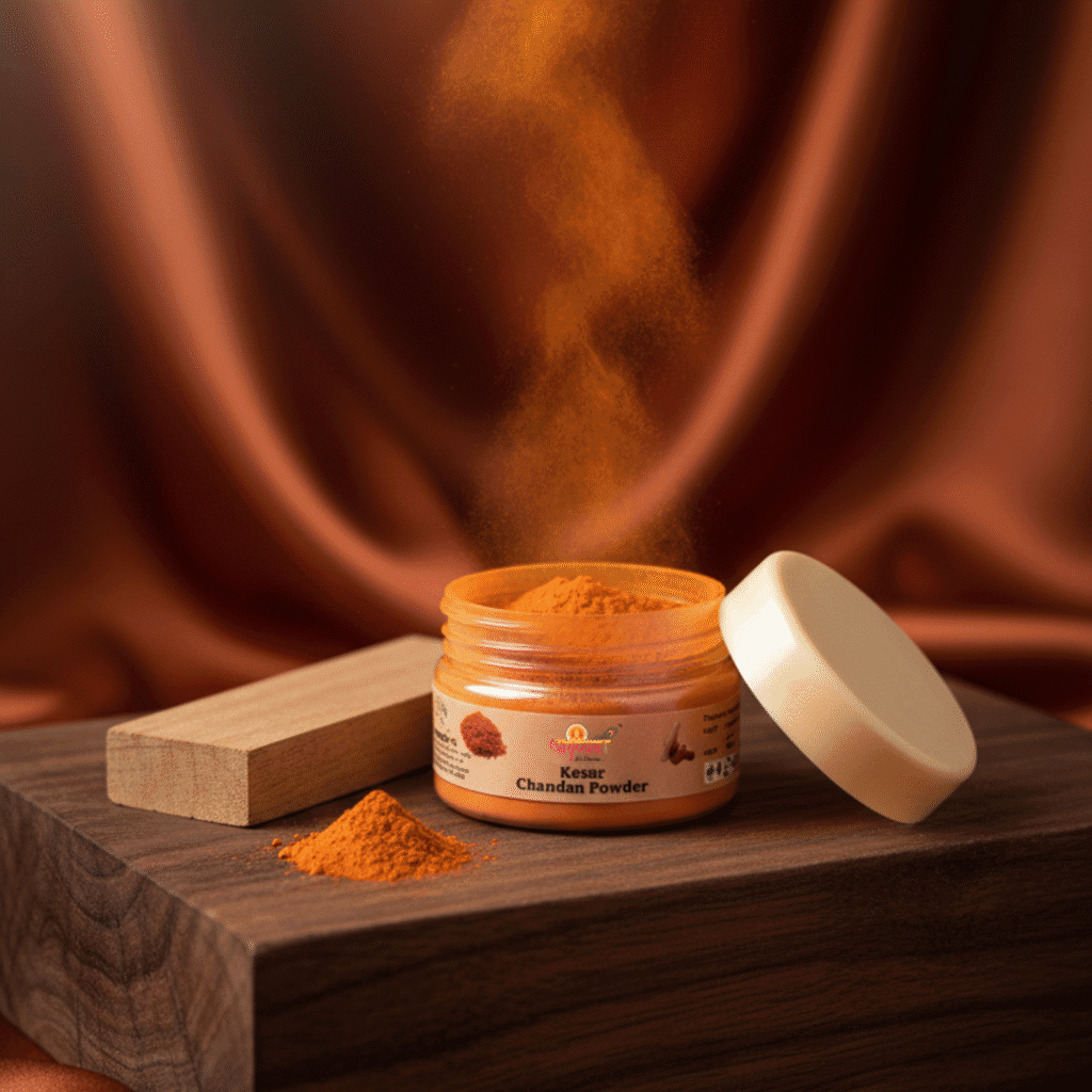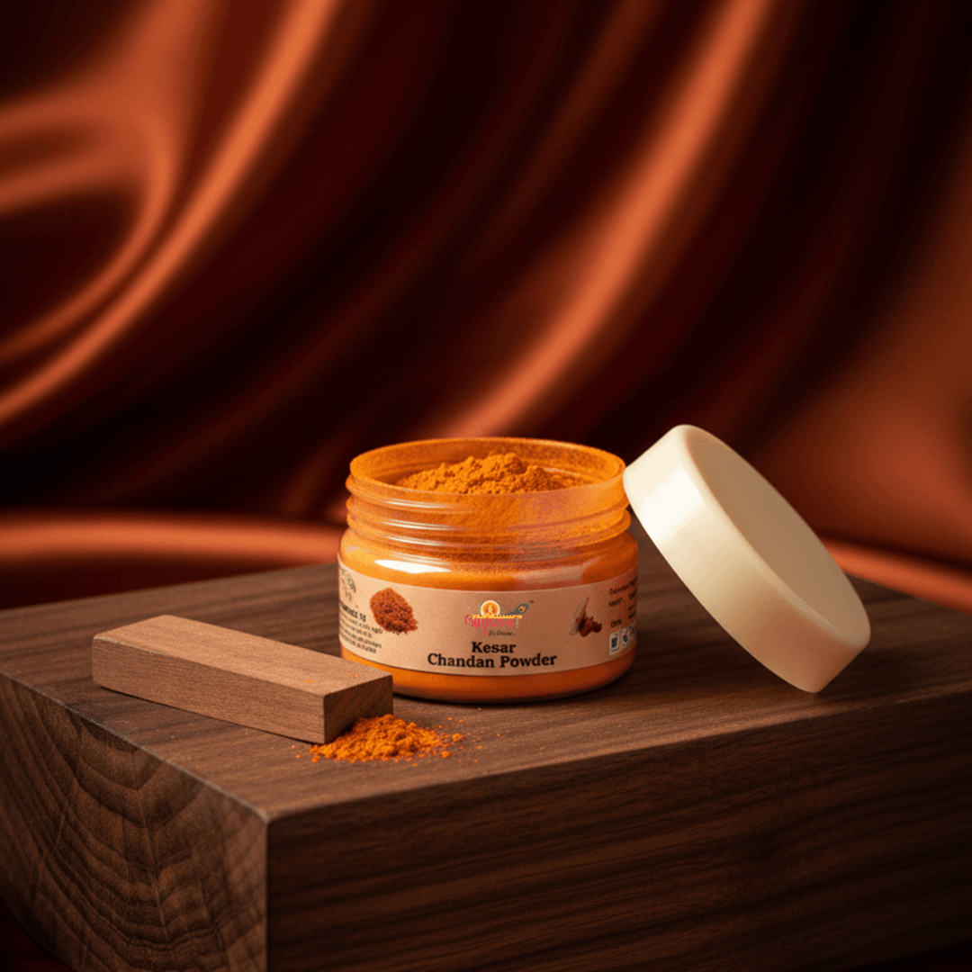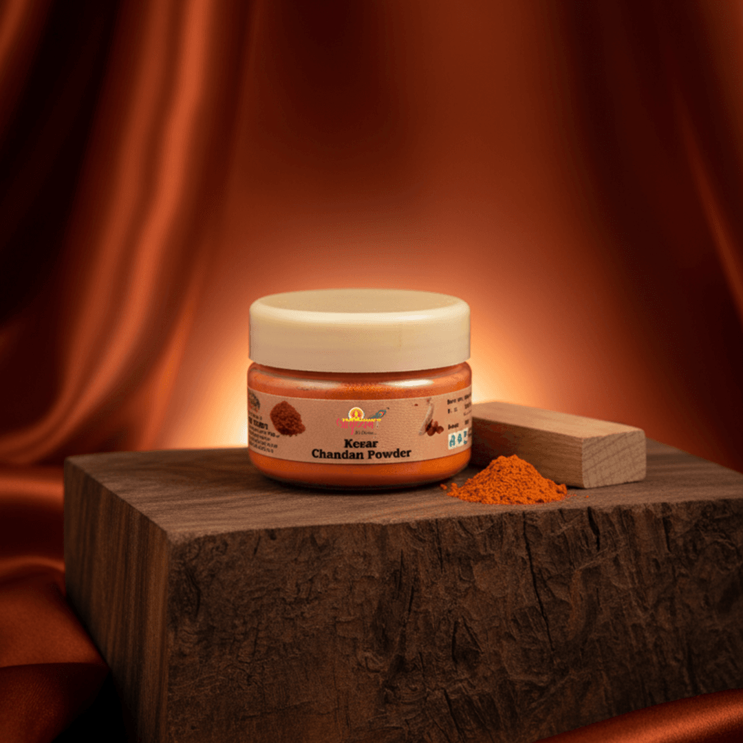Premium Kesar Chandan Chandan Powder crafted for religious and spiritual use. Ideal for pooja rituals, temple offerings, and devotional practices. Not for cosmetic use.