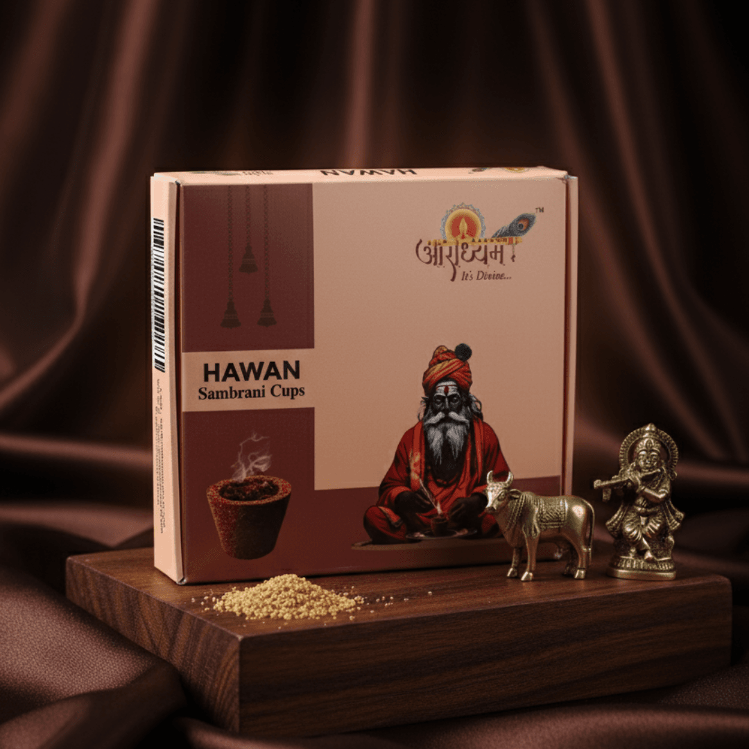 Experience divine purity with Hawan Sambrani Cups (Hawan Cups) — crafted from natural wood powder, cow dung, and herbal powders like Devdar, Nagarmotha, Guggal, and Loban. These charcoal-free and chemical-free cups emit gentle, non-choking smoke for a serene, aromatic atmosphere—perfect for puja, meditation, and relaxation. Each pack contains 15 cups with a free cup holder, offering an authentic, soothing experience infused with traditional care and purity.